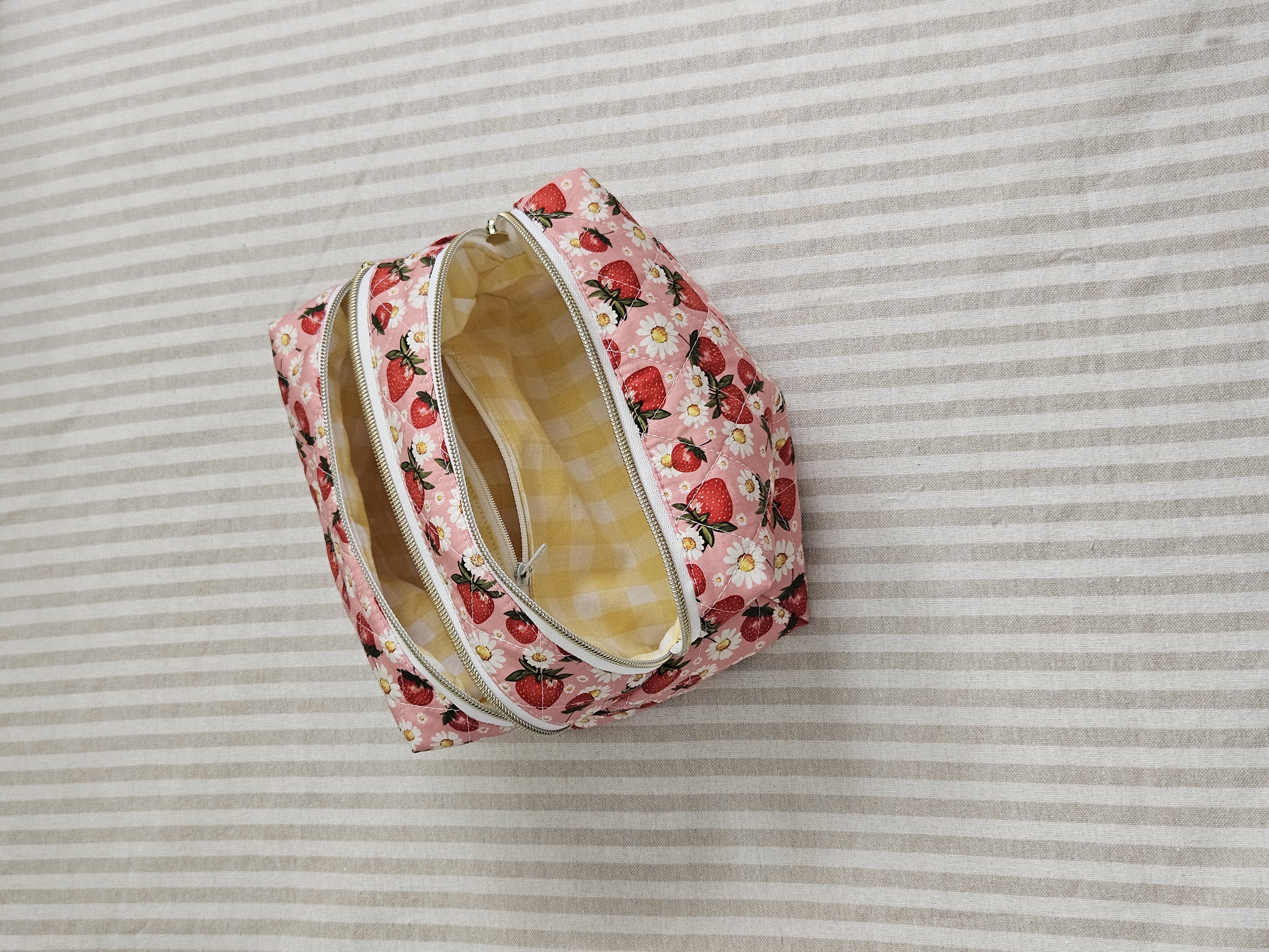 This handmade double zipper boxed pouch is perfect for organising cosmetics, toiletries, stationery, or small travel essentials. The boxed design gives it a structured shape so it stands up easily and holds more than a standard flat pouch. With two separate zipper compartments, you can keep items neatly separated and easy to find!