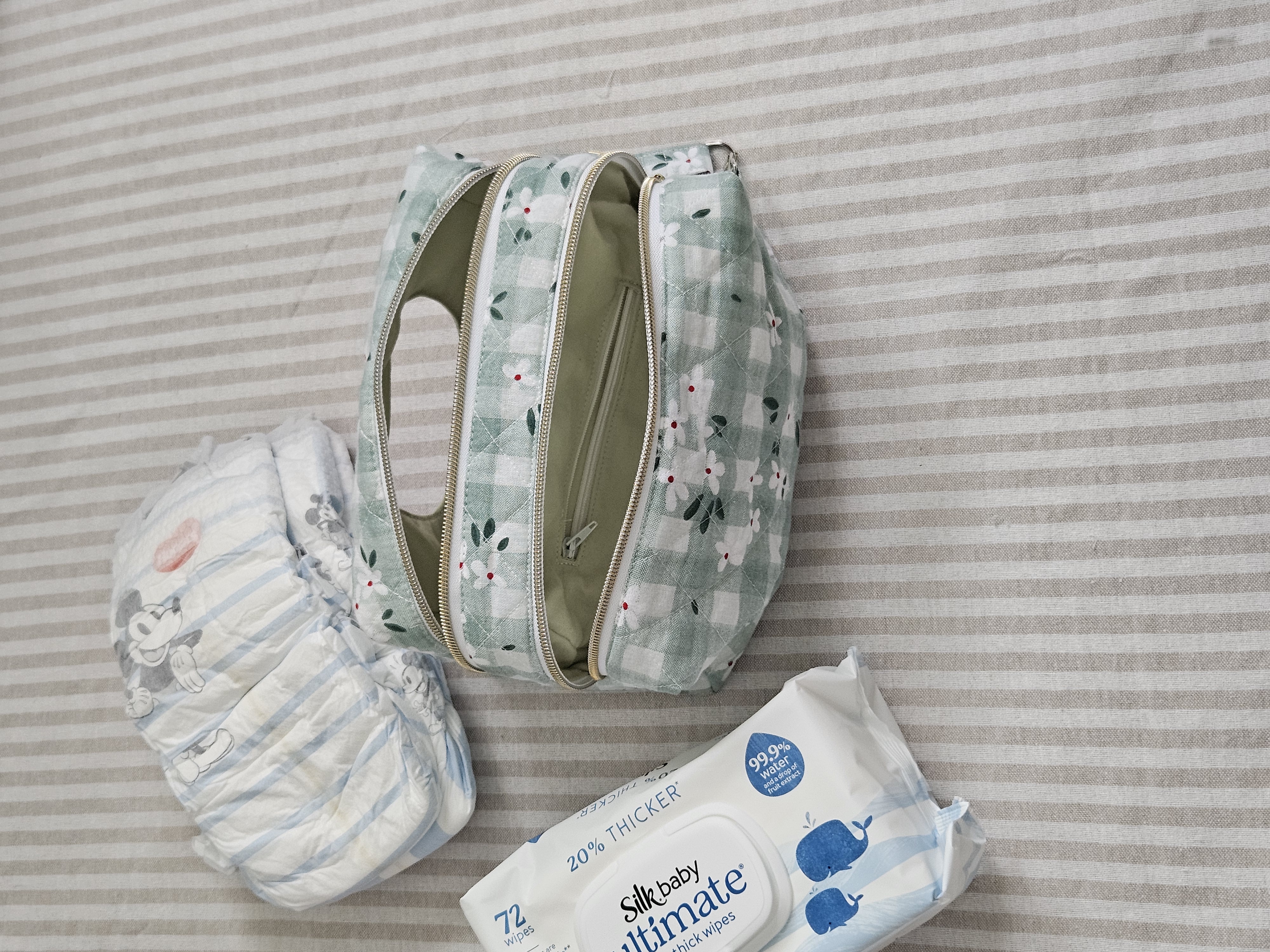 *Optional cut-out in one side for wipes - a perfect nappy pouch!